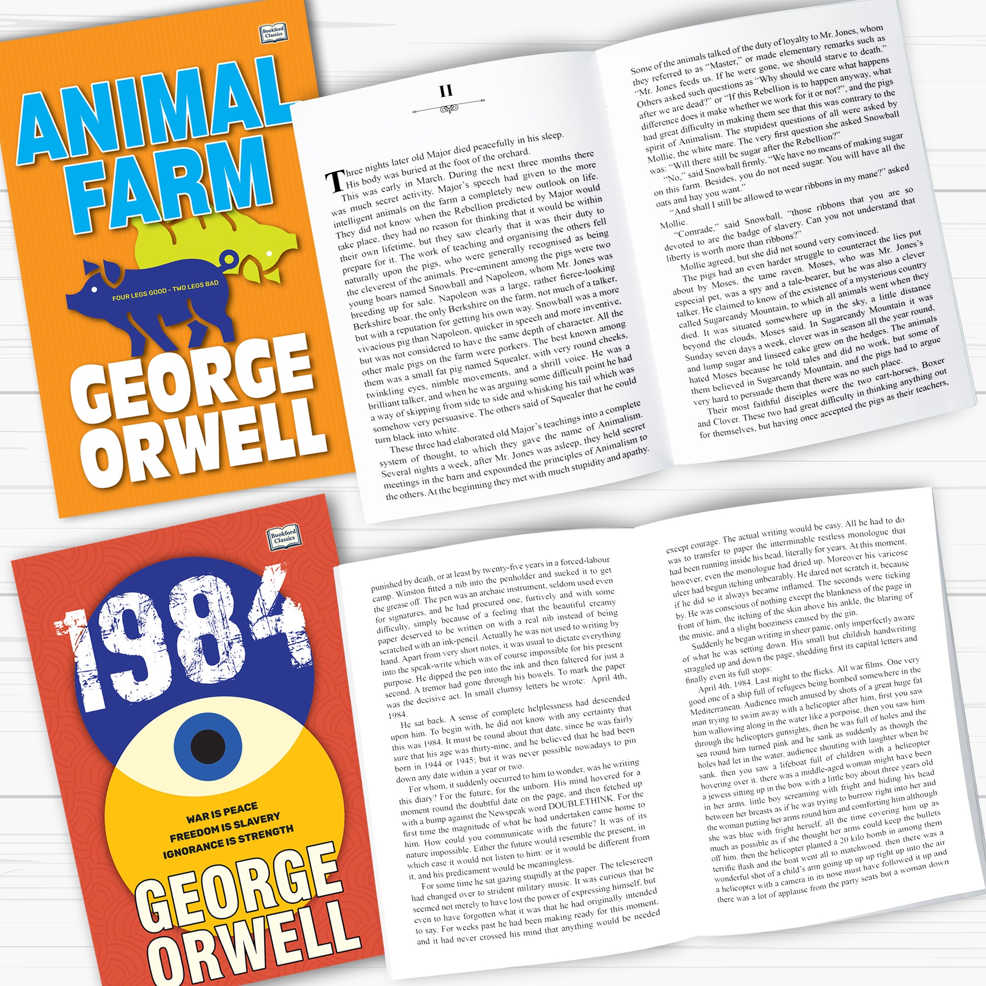 This special set of 2 books includes 1984 and Animal Farm by George Orwell. Both books are world-famous classics that share powerful messages about society, government, power, and freedom.