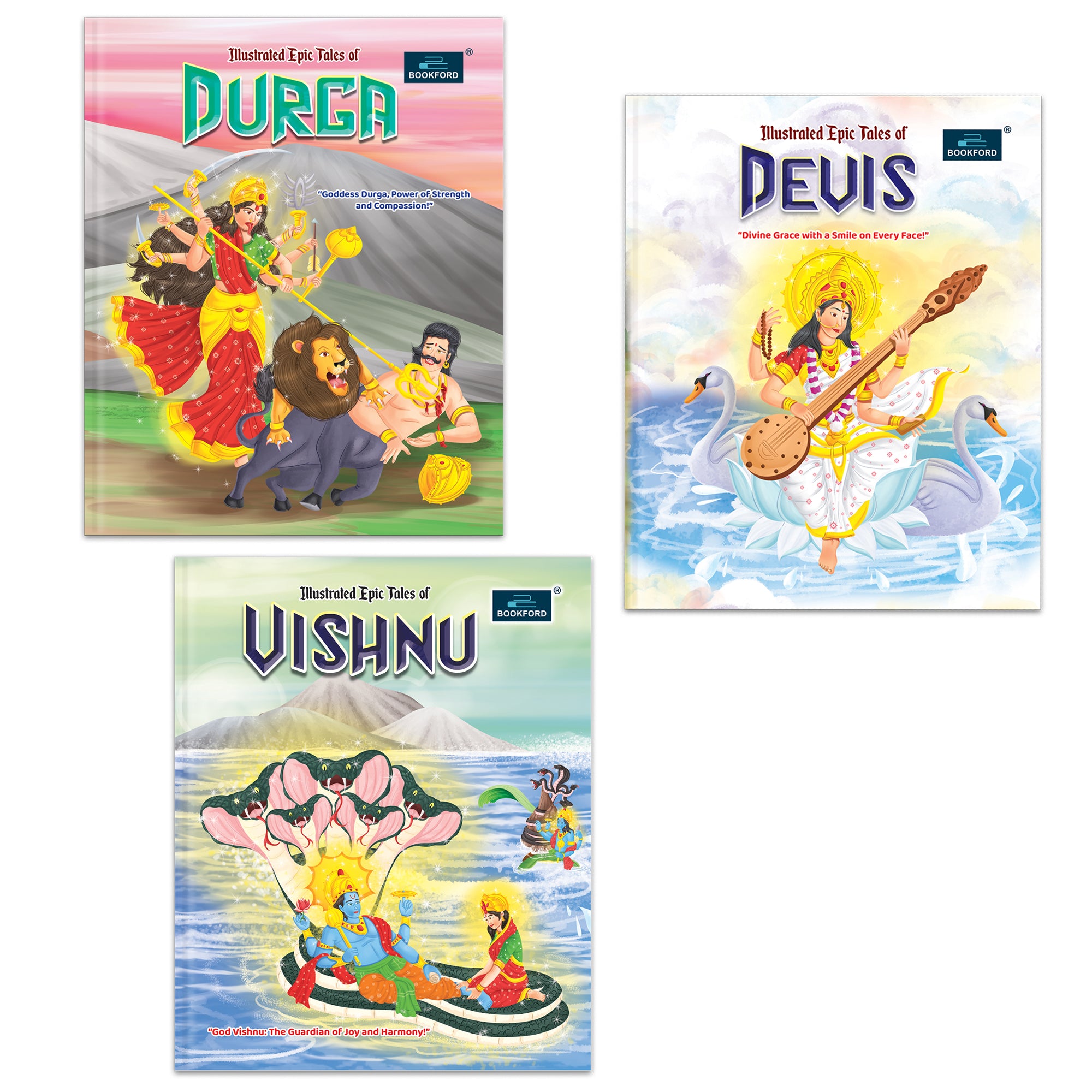 Illustrated Tales of Devis, Durga & Vishnu (Set of 3 Books) – Divine Legends and Sacred Adventures with Mythological Heroes Filled with Stunning Illustrations